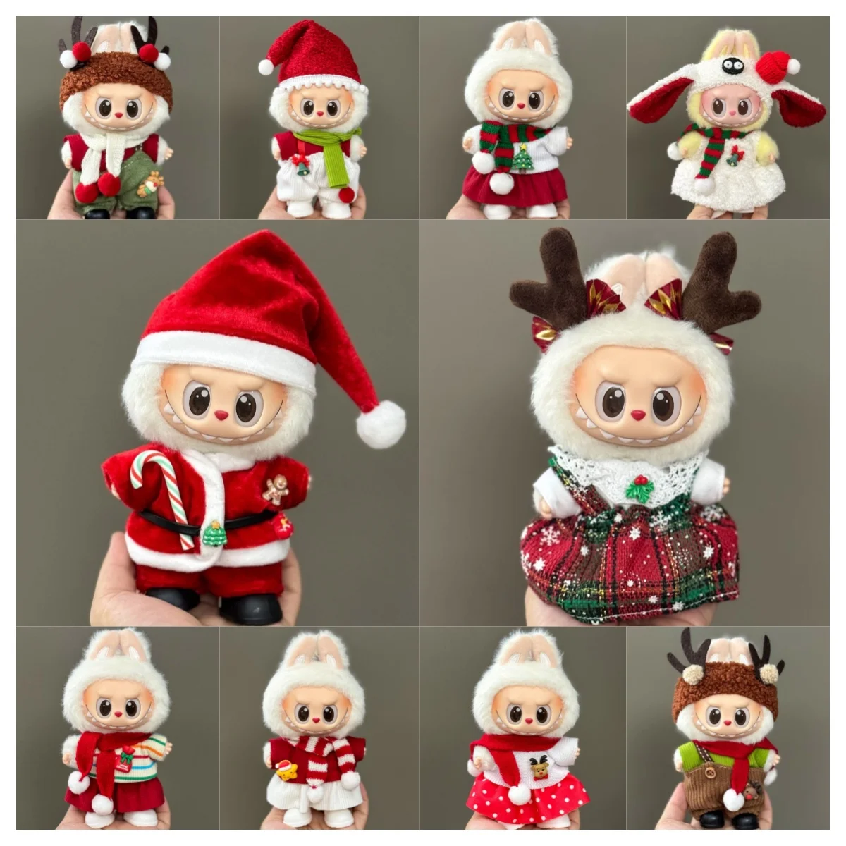 라부부 인형 옷 메리 크리스마스 모자 스카프 엘크 눈사람 세트 미니 플러시 인형 액세서리 새해 드레스 선물
