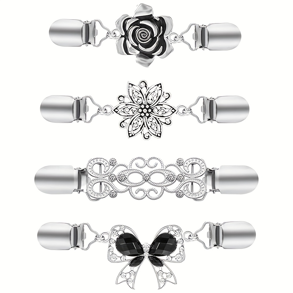 TEMU 빈티지 핏 드레스 클립 - 가디건, 스웨터, 숄, 허리 & 스카프용 클립 - 실버 컬러, 4가지 스타일