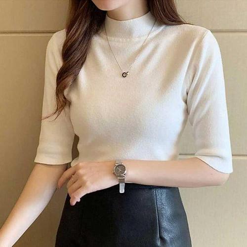 [셀러허브_여성트랜드패션]ONM 여성 출근 룩 가을 겨울 반 폴라 목 니트 5부