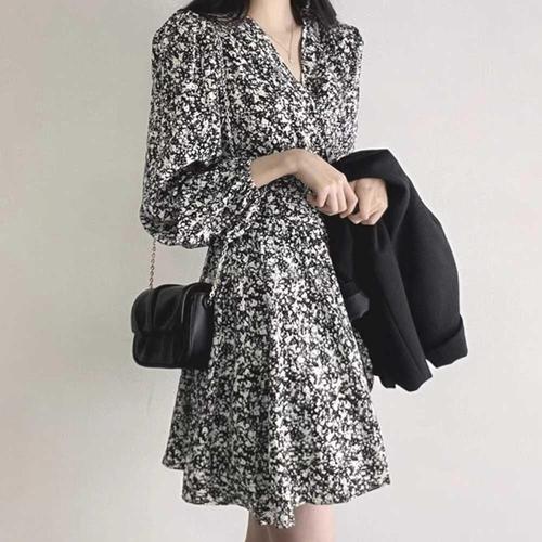 결혼식 하객 룩 패션 플레어 랩 플라워 패턴 원피스 WFL0IFT