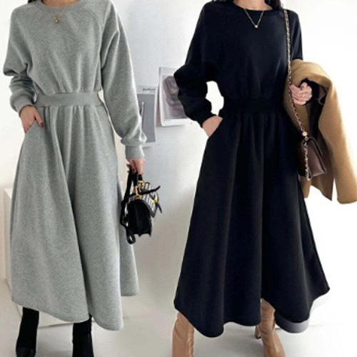 [모노무드]모노무드 HURK-183 여성 주머니 회색 편한 결혼식 경조사 일상 롱원피스