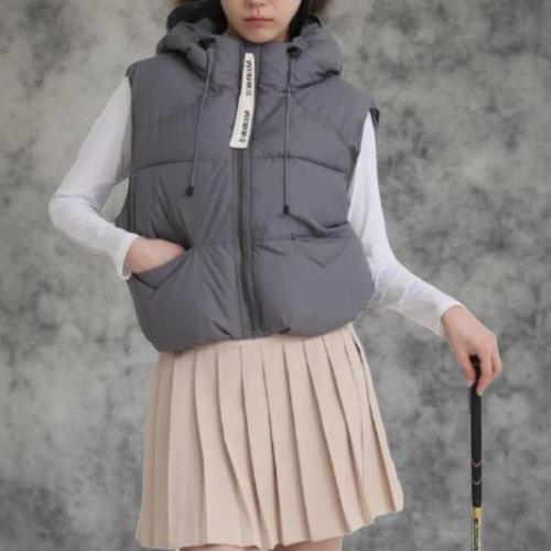 [옷자락]여성 경량 퀼트 후드 스트링 집업 패딩 베스트