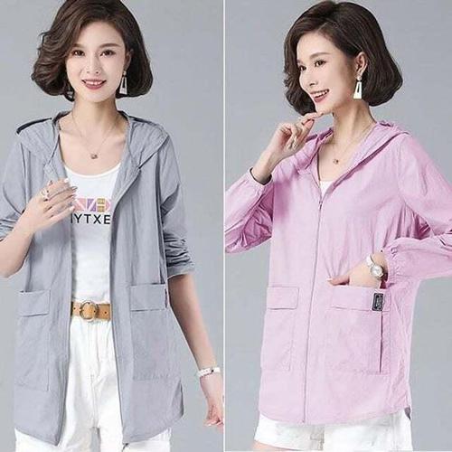 [드리다]여름 여자 후드 집업 경량 잠바 세미 크롭 빅사이즈 점퍼 40-50대 중년여성 엄마옷 미시 캐주얼