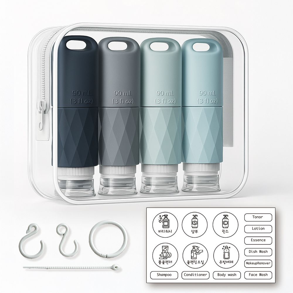 여행용 화장품 실리콘 공병 고리형 소분 용기 4종 세트