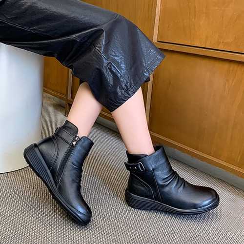 TEMU 2025년 신상 여성용 레트로 내부 키높이 슬립온 숏 부츠 여성용 무광택 표면 소프트 밑창 캐주얼 플랫 부츠 영국 스타일 부츠 학생 신발, 여성 신발
