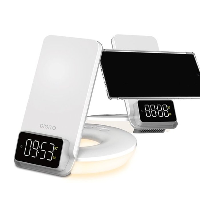 HULULU 무선 3in1 고속 충전기 LED 시계 아이폰 삼성 갤럭시 호환, 1개, 화이트