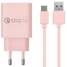 홈플래닛 퀄컴 공식인증 QC3.0 18W 고속충전기 + C타입 충전케이블 1.2m 세트, 핑크, 1개