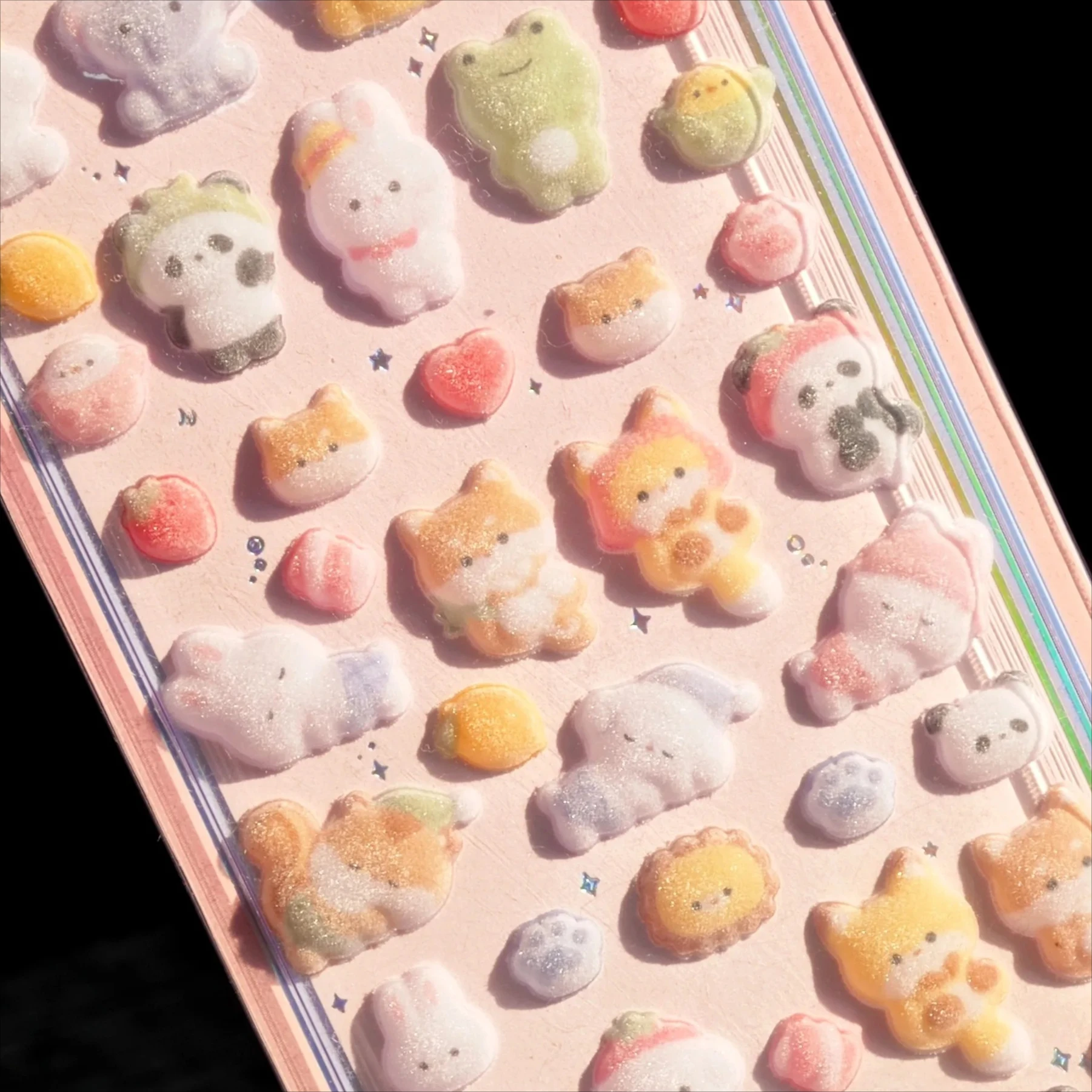 4개입 재미있는 동물 엠보싱 크리스탈 스티커 - 3D 입체 질감, 노트북, 휴대폰 케이스 및 DIY 공예용 귀여운 장식