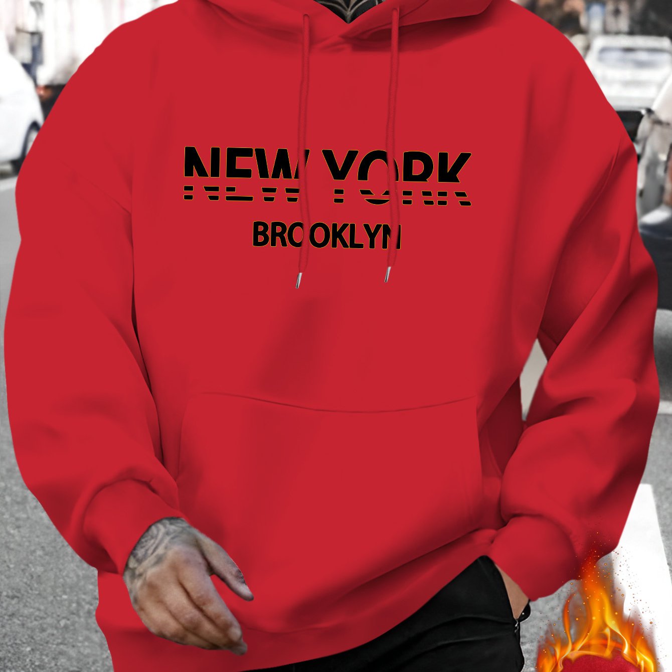 TEMU 남성용 뉴욕 브루클린 문자 프린트 캐주얼 후드 티, 패셔너블 드로스트링 풀오버 후드, 편안한 올매치 롱 슬리브 스웨트 셔츠, 레귤러 핏, 폴리에스테르 니트 직물, 가을/겨울 시즌