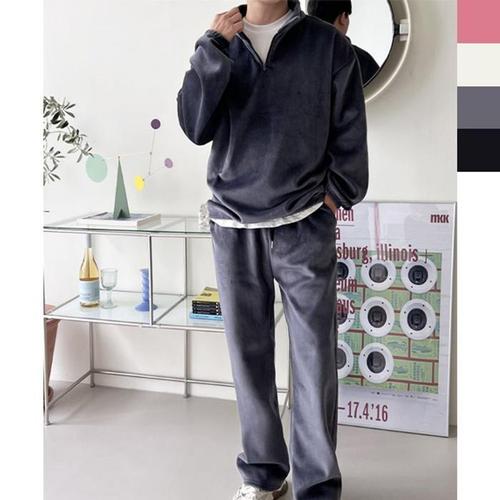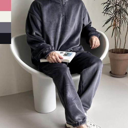 남자 골덴 운동복 트레이닝복 트레이닝 팬츠 바지 반집업 기모 와이드 츄리닝 세트 맨투맨 겨울
