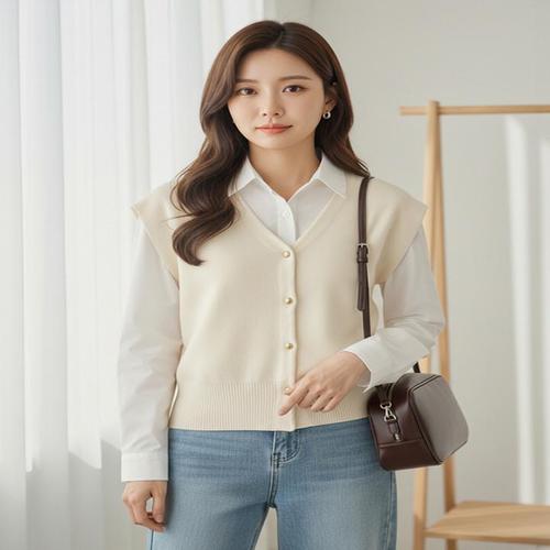 [에이샵][에이샵] 골드버튼 브이넥 니트 베스트_ASKV005F25