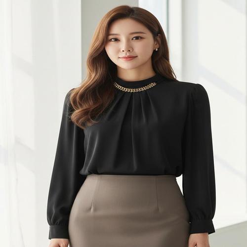 [에이샵][에이샵] 골드체인 포인트 하이넥 블라우스_ASBL072F25