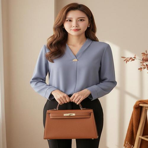 [에이샵][에이샵] 골드 포인트 브이넥 블라우스_ASBL071F25