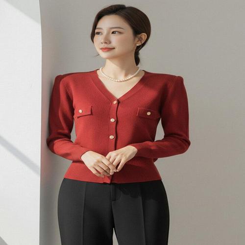 [에이샵][에이샵] 골드버튼 브이넥 니트 가디건_ASCD022F25