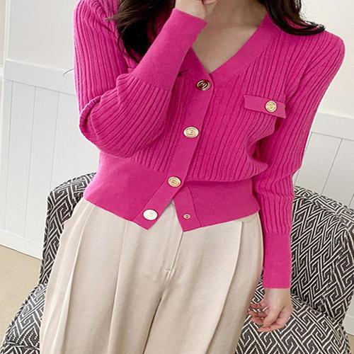 [에이샵][에이샵] 골드 버튼 브이넥 가디건_ASCD001S25