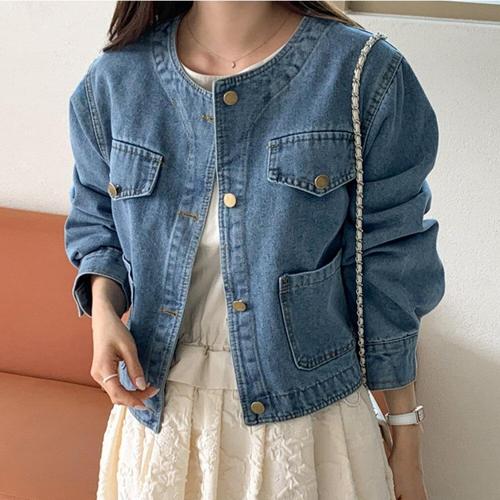 [에이시크]클래식골드 라운드 데님자켓 C25CJK703