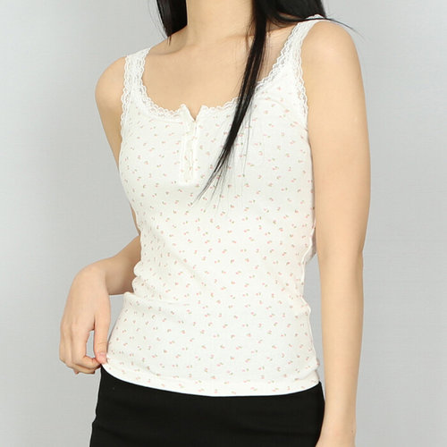 파라노말샵 / 라떼 골지 플라워 버튼 레이스 끈 나시 (파라노말샵)