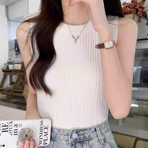 [에이치플러스몰]여성 골지 니트 나시 여름 탑 슬리브리스 신축성