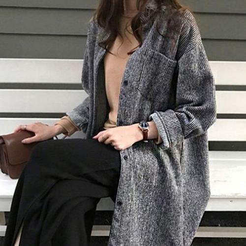 [엄지척]골지 그레이 오버핏 포켓 차콜 단추 롱 니트가디건_19801019_667501