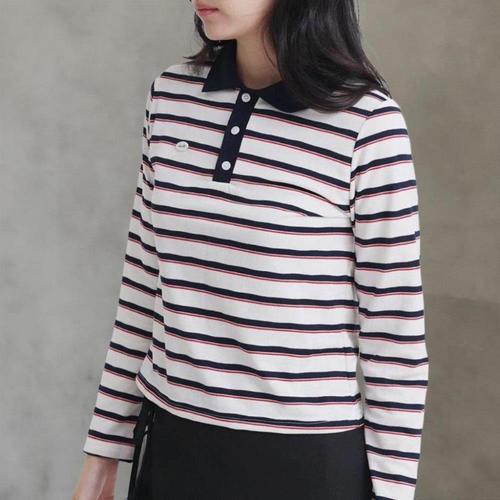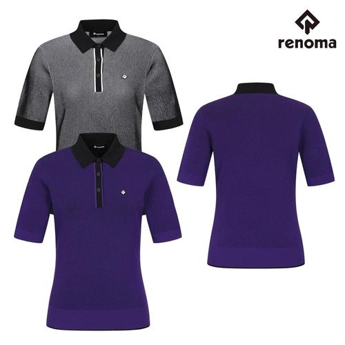 레노마골프 여성 가을 골지 라인 배색 반팔 니트 RWSPO.7201