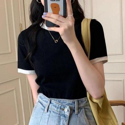 [셀러허브_여성트랜드패션]ONM 골지 여성 반팔 니트 여름 여자 반팔티 니트티