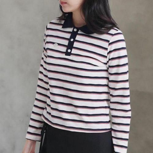 [셀러허브_여성트랜드패션]ONM 여성 여름 빈티지 골지 라인 배색 크롭 반팔 티