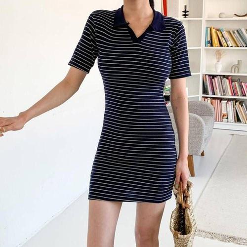 [66-110] 페러 하프넥 골지 반팔 원피스