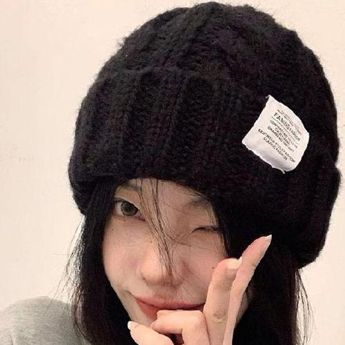 [에이치플러스몰]남녀 골지 로고라벨 니트 비니 1P 겨울 데일리 모자
