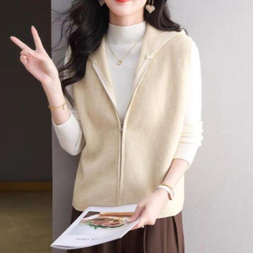 [신상오픈런]여성 기본 무지 골지 레귤러핏 니트 집업 베스트