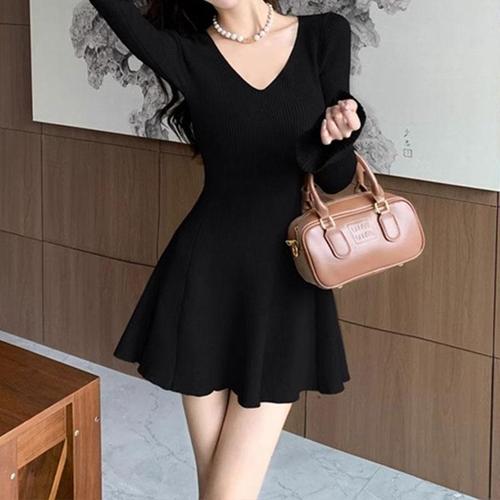 타니즈 브이넥 슬림 골지 니트원피스 플립