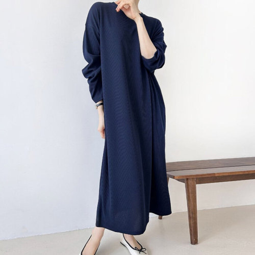 여자 래글런 울니트 골지 목폴라 밑단트임 롱원피스