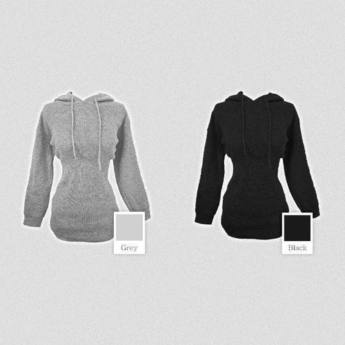 [에어플레인]허리잘록 골지 후드 니트 미니원피스(2color)