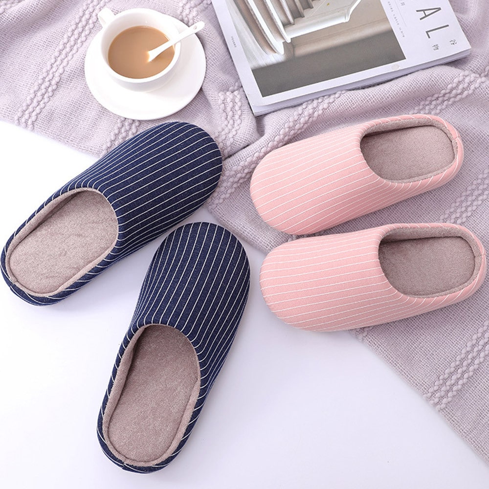 실내용 면 소재 무소음 슬리퍼 두꺼운 밑창 삼중층 커플 슬리퍼 사계절용 봄 가정용 바닥 슬리퍼