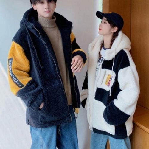 [모노무드]LMO 남녀공용 따뜻하고베이직 배색으로 세련된 양털 후드집업