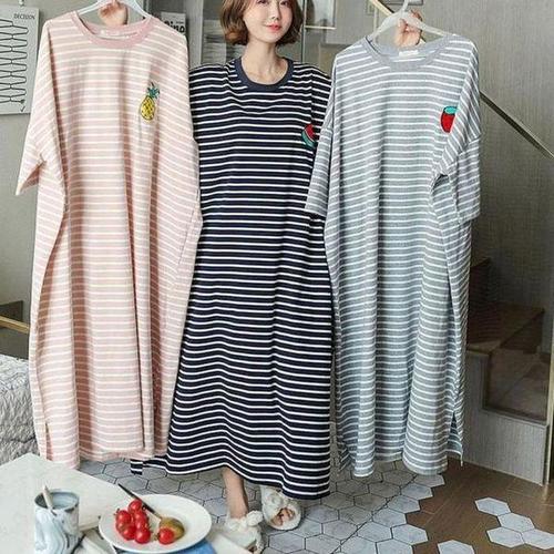 [옷자락] 여자 스트라이프 빅사이즈 과일패치 파자마 롱원피스