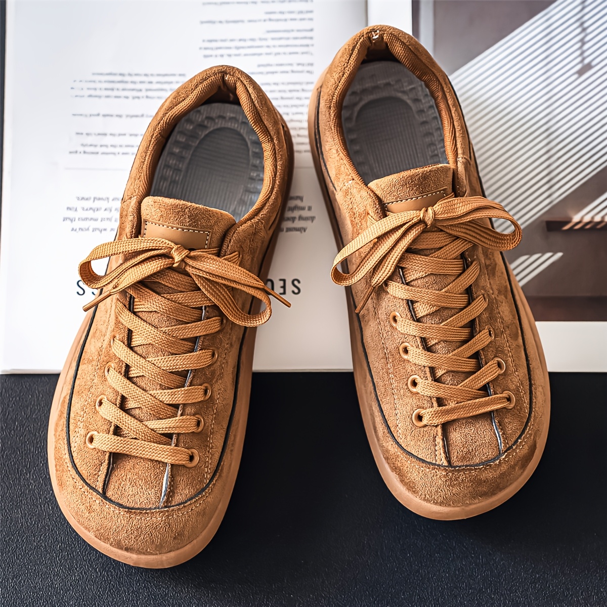 TEMU 세련된 커플 캐주얼 스니커즈 한 쌍, 사계절 내내 착용하기 적합한 캐주얼 로퍼, 고품질 느낌의 단색, 둥근 토 디자인, 레이스업 스타일, 통기성 좋은 갑피, PVC 내마모성 밑창