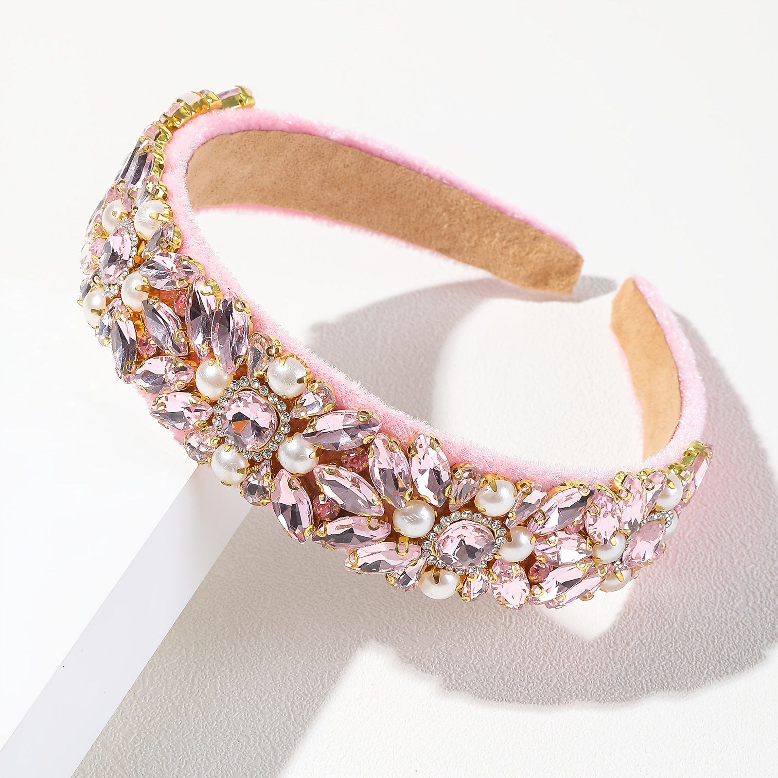 TEMU 1개 컬러풀 라인스톤 장식 와이드 헤어밴드 - 빈티지 바로크 스타일, 다양한 색상의 우아한 여성용 헤어 액세서리, 일상용 헤어 액세서리