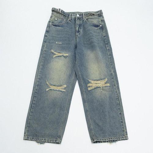 [신상오픈런]여성 연청 와이드핏 워싱 찢청 구제 청바지