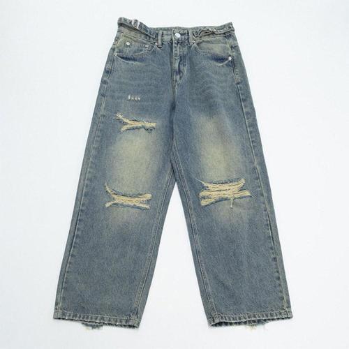 [옷자락]남자 디스트로이드 워싱 구제 와이드핏 논스판 청바지