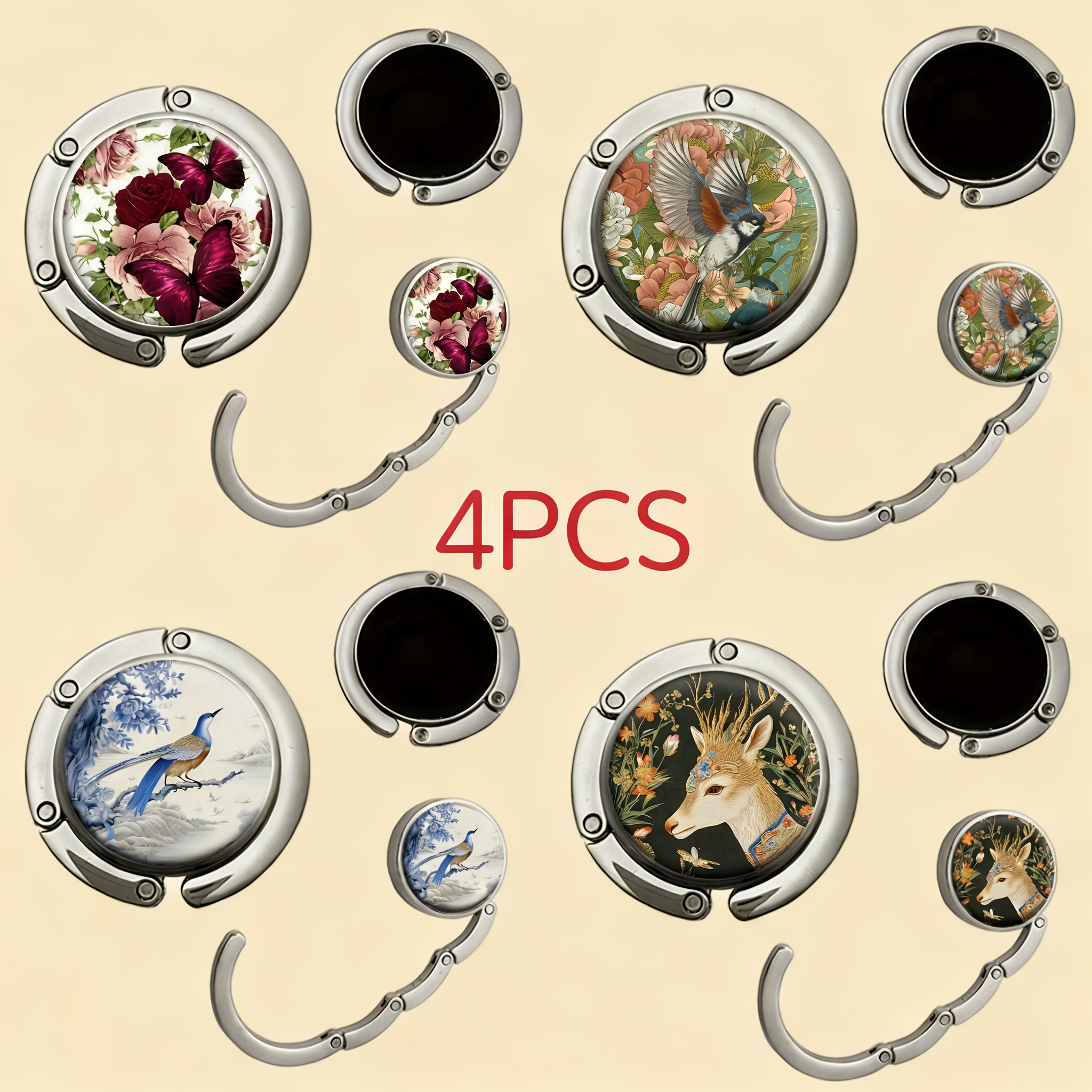TEMU 4개 지갑 스탠드 후크, 메탈릭 마감, 튼튼하고 내구성 좋음, 컴팩트하고 정교함, 간편한 접근을 위한 공간 절약형 디자인, 가방을 안전하게 보관, 플로럴 장식의 비밀 정원 스타일