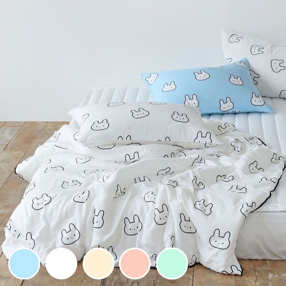 시원한 키치리본 마이크로 워싱 양면 냉감이불 먼지없는 아이스 쿨링 얇은 국산 여름이불 세트