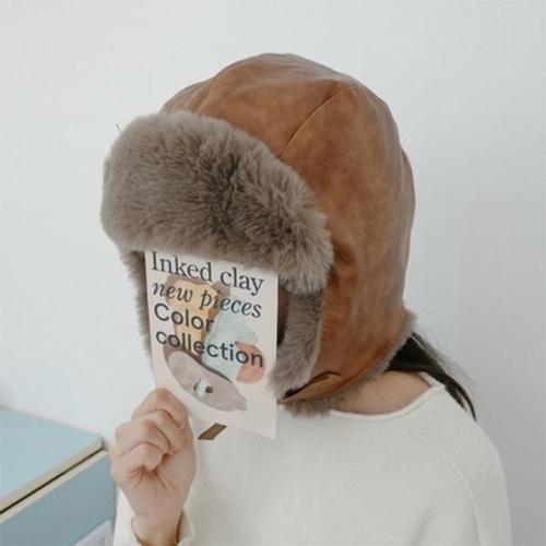 [HYIJVLT3_4B]귀덮개모자 레더 귀달이 군밤모자 (브라운)