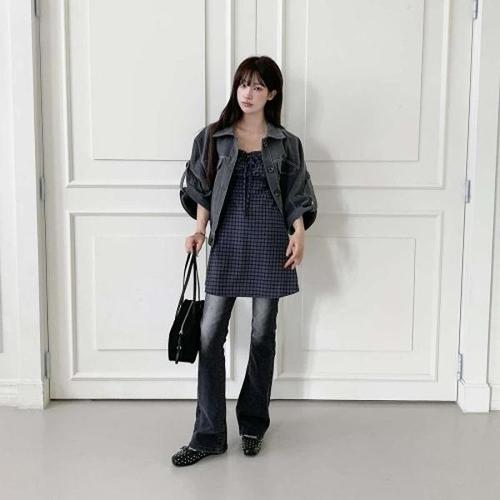 [다잇템][다잇템] 여자 어깨스트랩 잔주름 격자 귀여운 쁘띠 원피스_23227071_588872