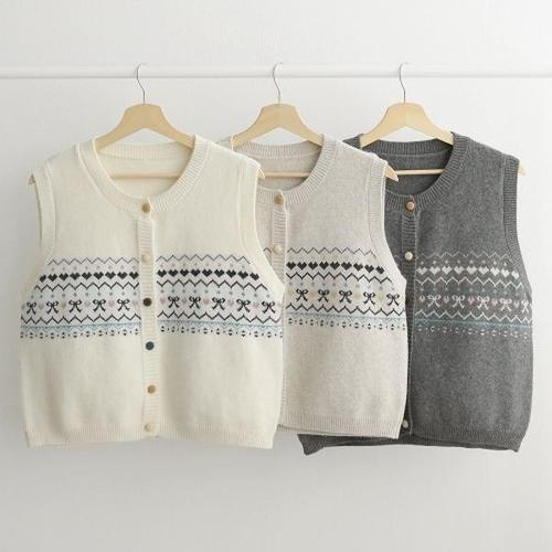 [다잇템][다잇템] 여성 귀여운 패턴 스웨터 박스 리본 하트 조끼_22588779_588872
