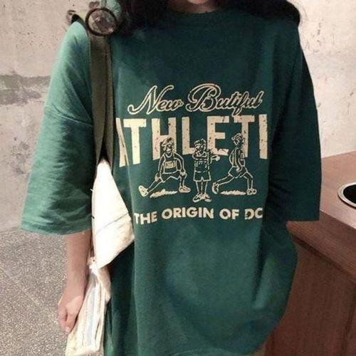 [에이치플러스몰]박스 귀여운 캐주얼 빈티지 프린팅 필수템 반팔 오버