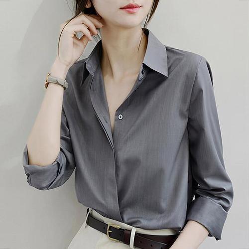 여성 프리미엄 패션 셔츠 실크 쉬폰 긴팔 오피스룩 셔츠 CIILLNY