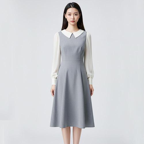 여성 카라넥 하객룩 페미닌 블라우스 레이어드 원피스 EGG-WDR-20777-그레이