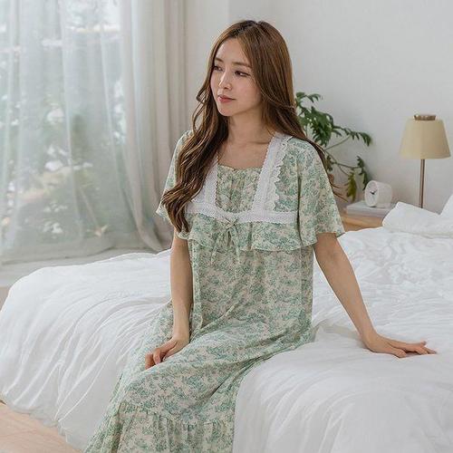 [바풀]CA3V36615 여성잠옷 큐디시 파자마 원피스 반팔 잠옷 그린