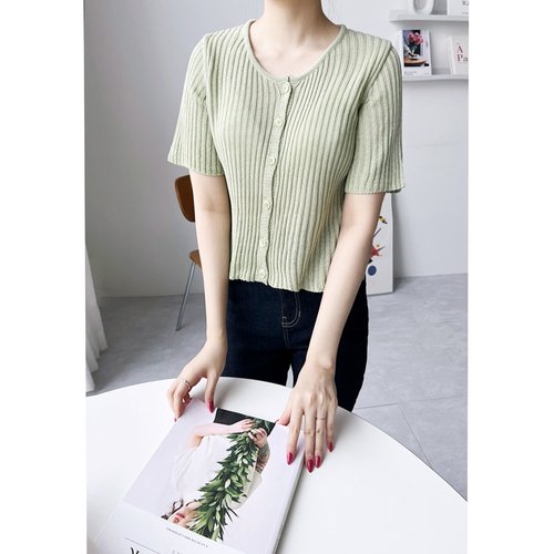 여자 반팔 골지 니트 가디건 원피스 트위드자켓 하객룩 블라우스 여성가디건DJW-CAH-S2LCBB1050-그린