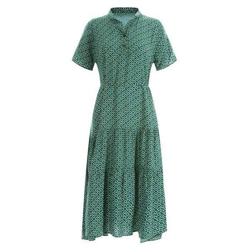 [샵앤]네모 여성 차이나카라 반오픈 등원룩 데일리 반팔 플레어 롱 원피스 CP-WDR-11985-그린